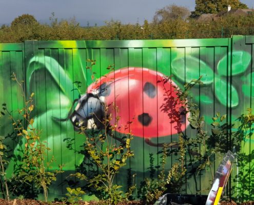 A nature themed mural painted in Maindee, Newport. Part of the a Greening Maindee project