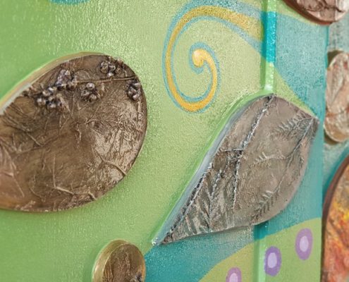 All the plaques are casts taken from pressing various flora into clay. I used Cassini’s…