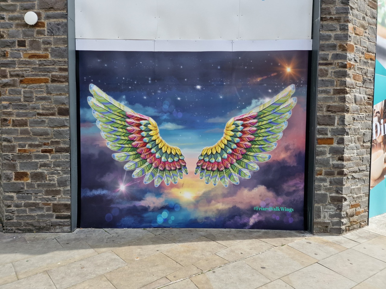 I’ve made 2 Instagrammable graffiti murals for Friars Walk in Newport. They were both sets wings , designed as ‘selfie spots’ for a cool shareable photo.