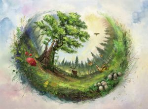 The finished version of this mural was pretty dark The finished version of this mural was pretty dark and gave the feeling of beingb surrounded by trees.