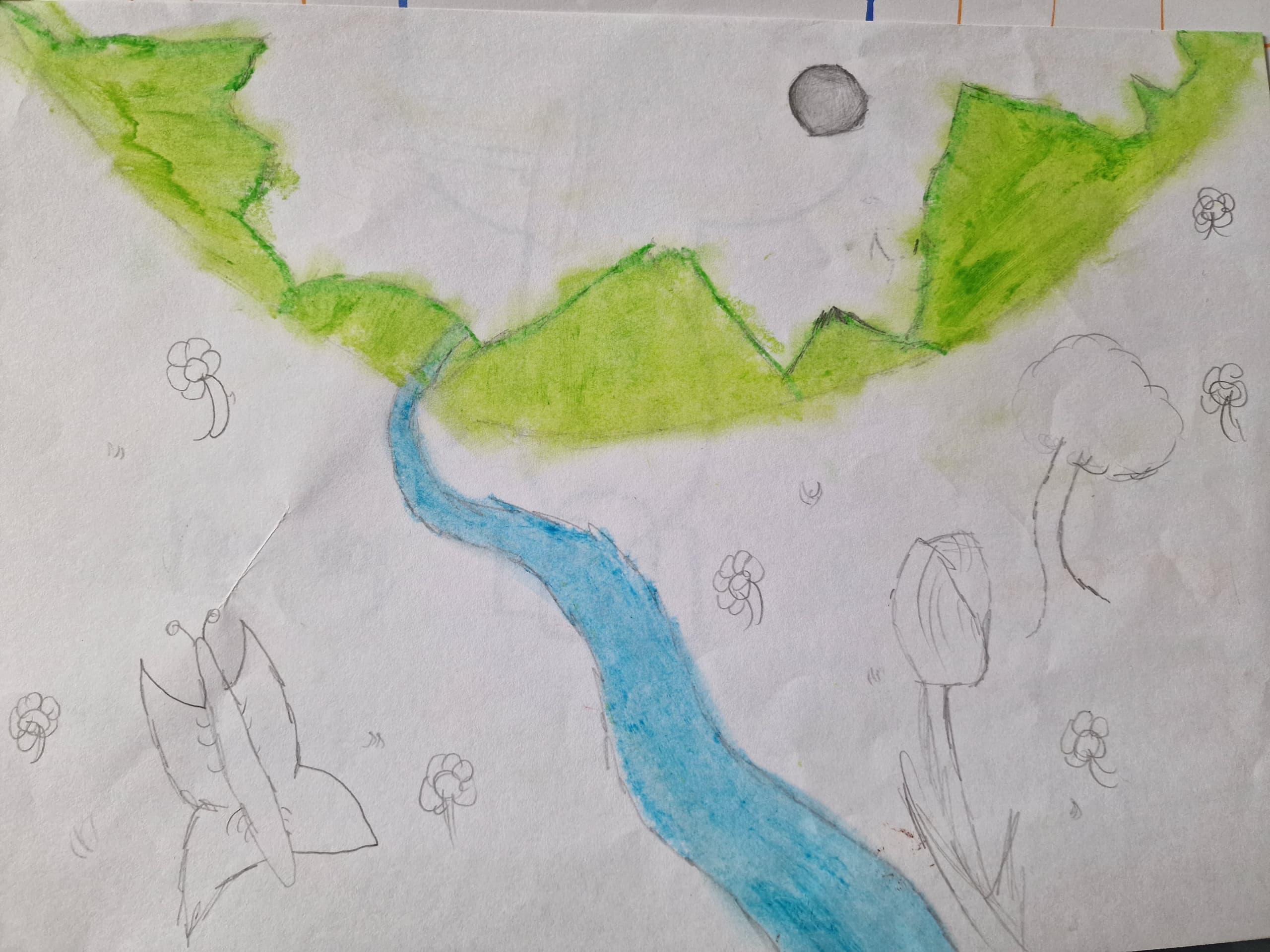 I’ve also included lots of species found in the area such as :buff tailed bumblebee, ladybird, scabious, oxeye daisy, birds foot trefoil, poppy, native daffodils (paler with a twist in the petal), native bluebell, peacock butterfly, common blue butterfly and small heath, also a grey heron (a common site on the river). It’s good to be nerdy about this stuff and make sure I get it right.