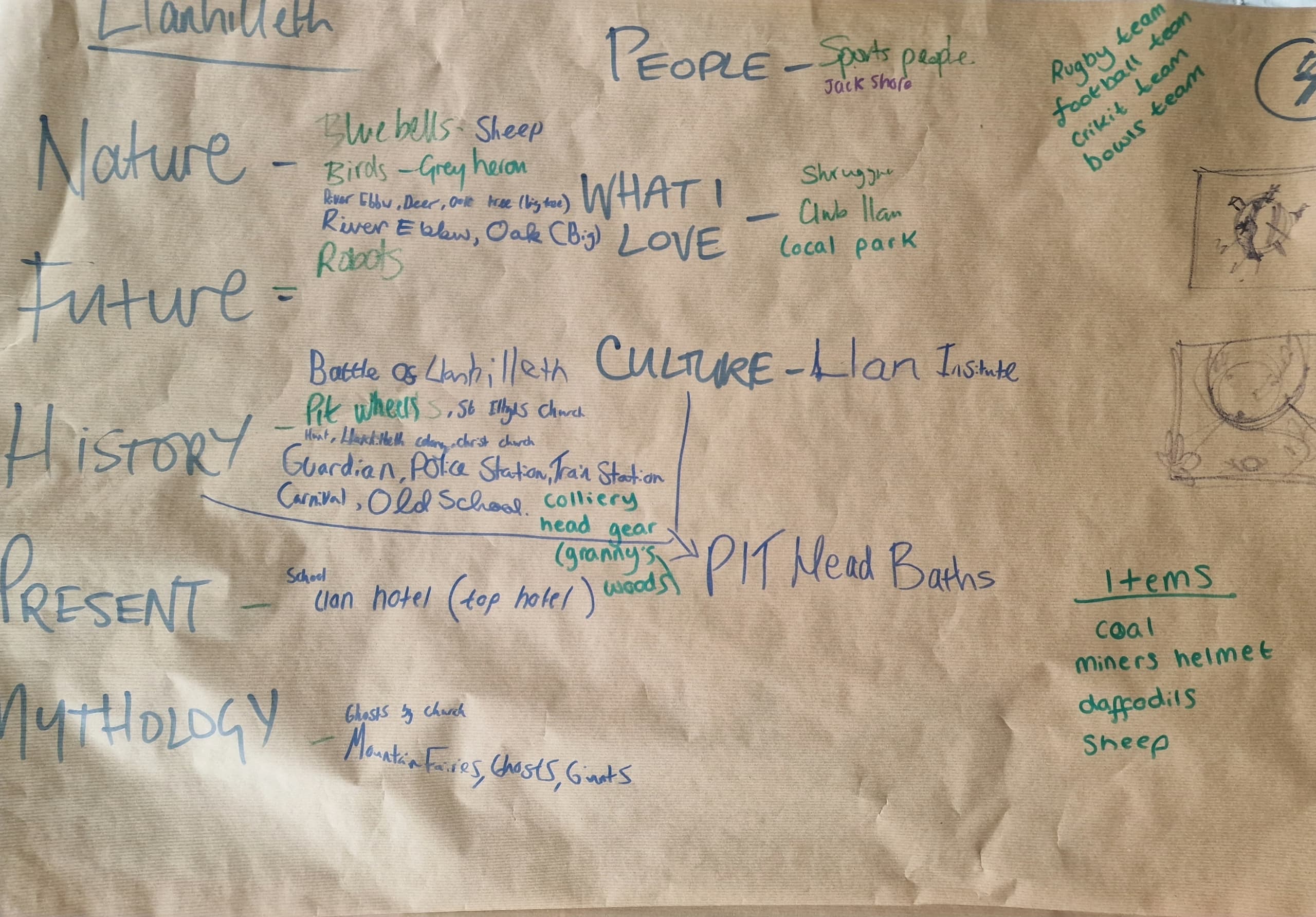 The mural was designed through workshops with the young people of Clwb Llan, based at the Institute, and the ideas were circulated throughout the community to get lots of feedback.