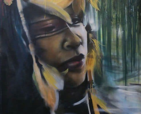 Here’s another portrait in my series. All the paintings are to be donated to Amazon Beat to raise money for the Munduruku Tribe. The original is by Julia Moreas