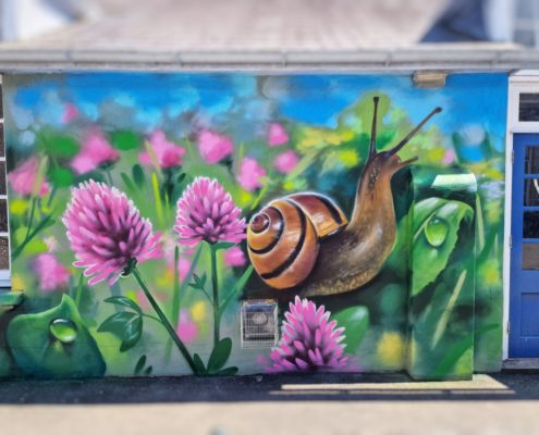 A nature themed mural painted in Maindee, Newport. Part of the a Greening Maindee project