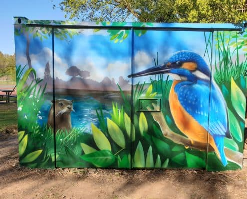 Nature graffiti mural in Rogerstone, Newport