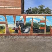 In April of this year, the vision became a reality. With spray paint in hand, Andy meticulously brought the gigantic rose chafer beetle to life on the garage doors. Its iridescent hues shimmered in the sunlight, adding a touch of enchantment to the surroundings. Not far away, the storage container eagerly awaited its transformation. And so, with vibrant strokes and a keen eye for detail, it was adorned with a magnificent monarch butterfly. The vibrant orange hues served as a beacon of inspiration and a symbol of transformation, reflecting the canal basin’s ever-evolving beauty.