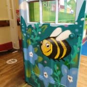 I’ve been back up in Troedyrhiw this week painting murals. The brief was to make a bright and colourful room full of grass and cute insects. I think I’ve ticked those boxes with this. This is the 4th mural I’ve painted at the school and hopefully they’ll have me back for more. You can see the other murals here and here